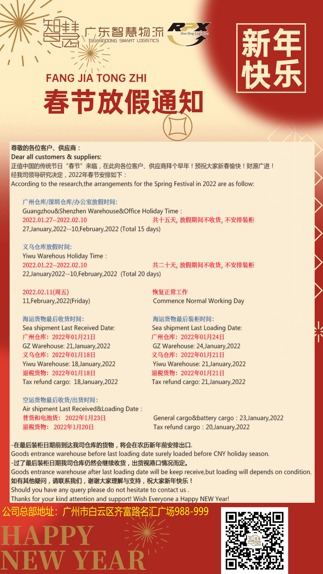 廣東智慧國(guó)際物流有限公司2022年春節(jié),放假安排。