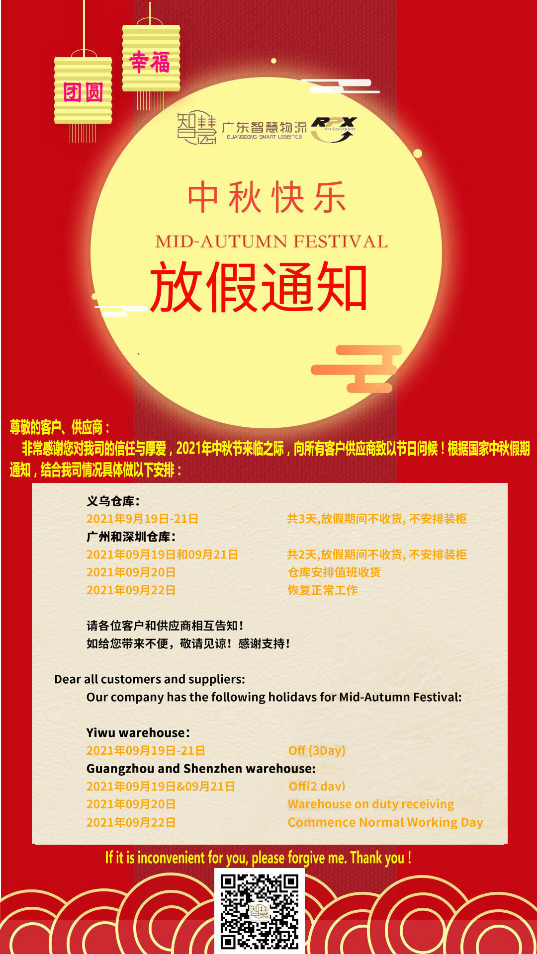 廣東智慧國(guó)際物流有限公司中秋佳節(jié),放假安排。
