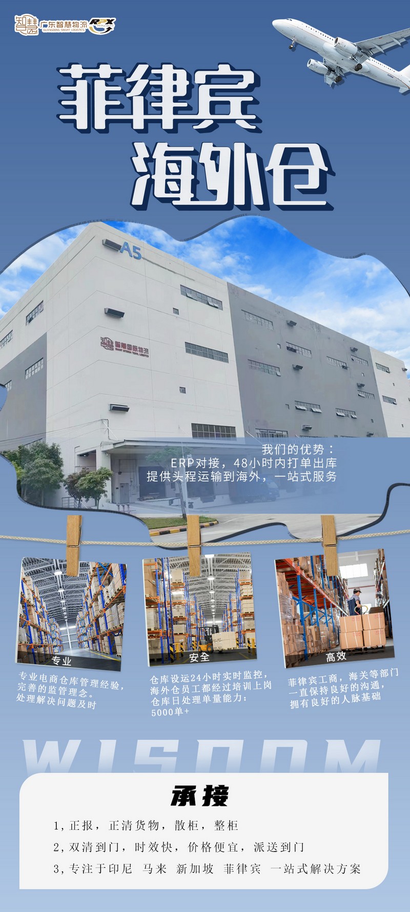 廣東智慧物流專注于菲律賓海外倉(cāng)、菲律賓海外倉(cāng)一件代發(fā)、菲律賓電商發(fā)貨、海外倉(cāng)一件代發(fā)一站式的海外倉(cāng)服務(wù)。菲律賓的海外倉(cāng),主要是針對(duì)菲律賓本土電商客戶,為客戶提供倉(cāng)儲(chǔ)、配送、物流等服務(wù),以減少客戶在倉(cāng)庫(kù)、物流和物流運(yùn)輸中的各種麻煩和煩惱。